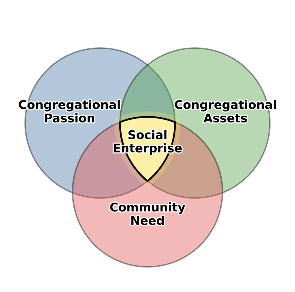 discerning where those three circles of Congregational Passion, Congregational Assets and Community Need intersect to show us what our Social Enterprise could be?