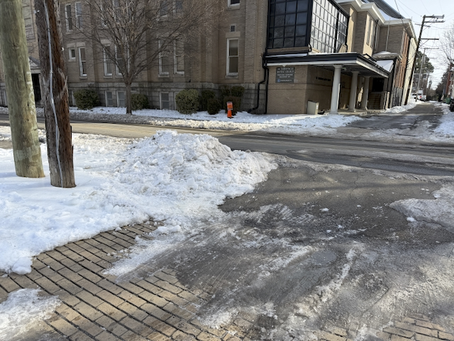 The concern lies beyond the immediate perimeter. Street parking remains unpredictable, and parking in the church lots will be extremely limited due to lingering ice and snow.